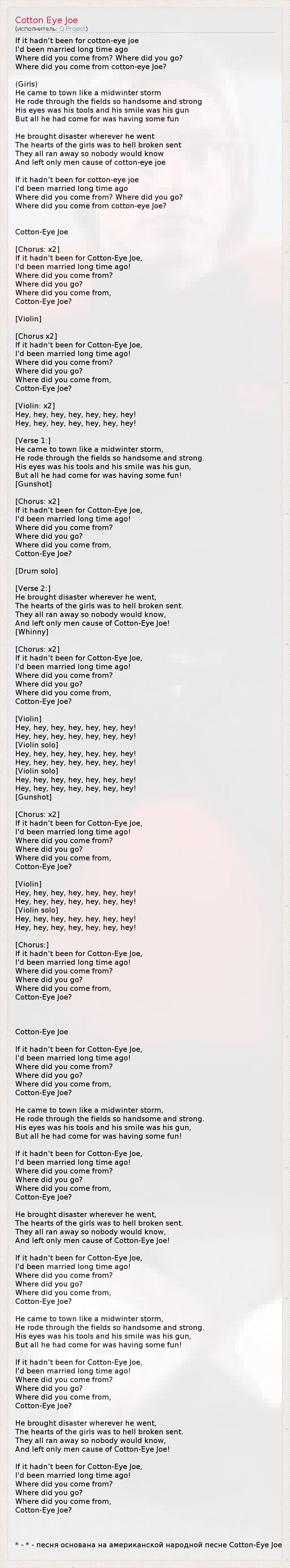 * - * - песня основана на американской народной песне Cotton-Eye Joe