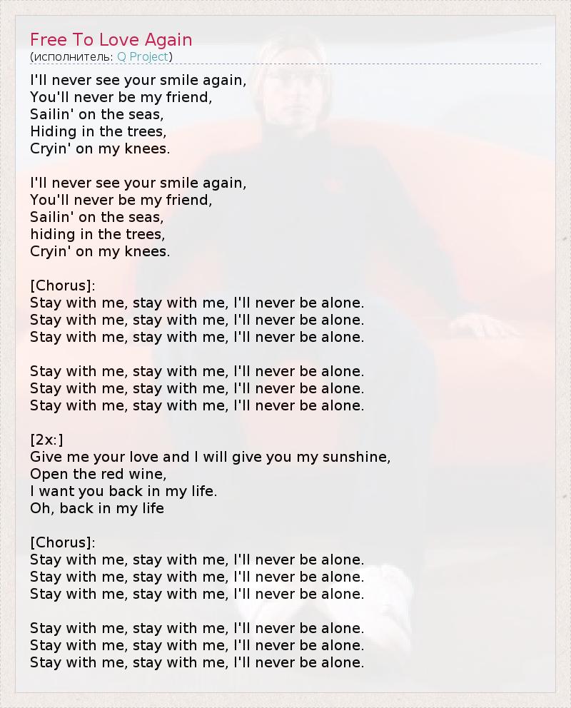 Останься со мной, останься со мной, я никогда не буду одинока.