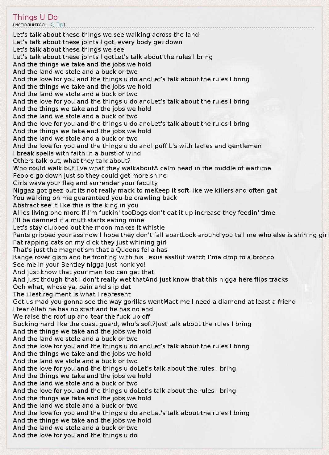 А как ты думаешь, о чем песня "Things U Do" ?