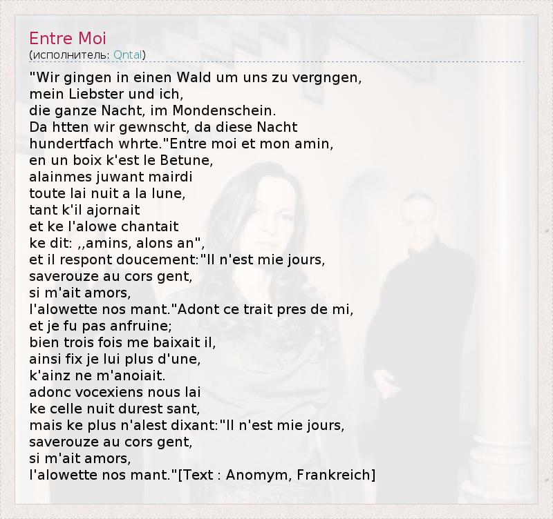 А как ты думаешь, о чем песня "Entre Moi" ?