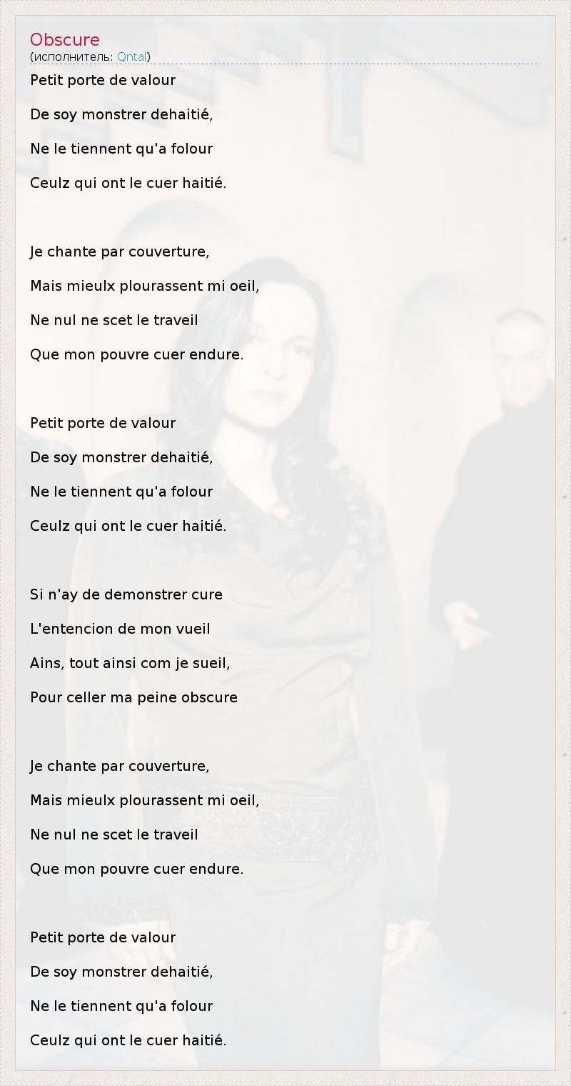 Pour celler ma peine obscure