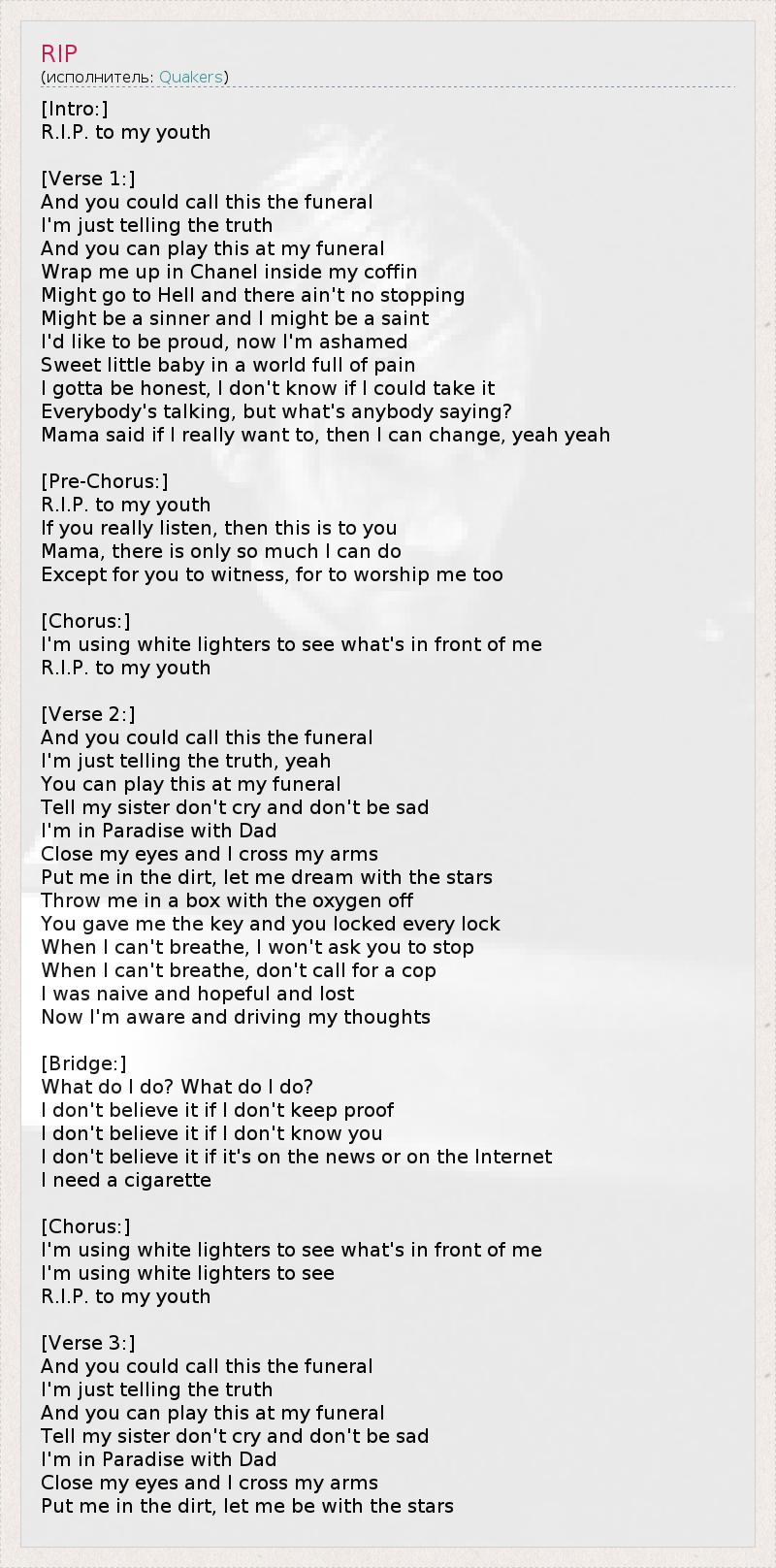 А как ты думаешь, о чем песня "RIP" ?