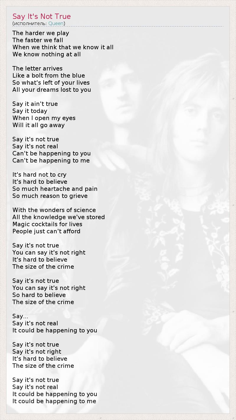 А как ты думаешь, о чем песня "Say It's Not True" ?