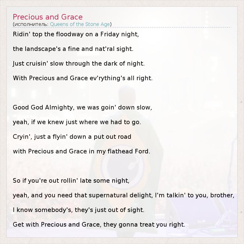 А как ты думаешь, о чем песня "Precious and Grace" ?