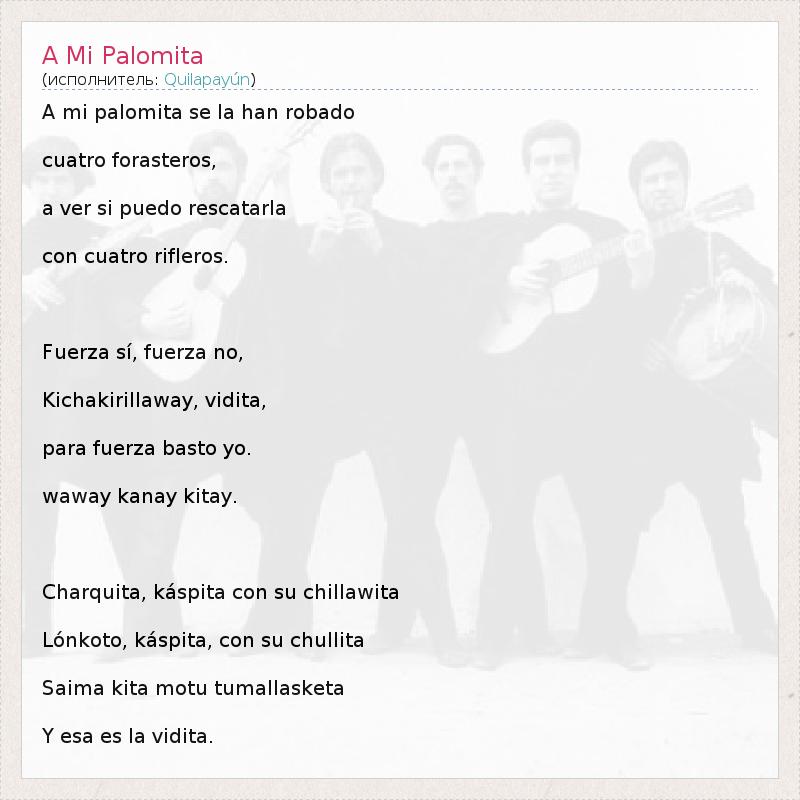 А как ты думаешь, о чем песня "A Mi Palomita" ?