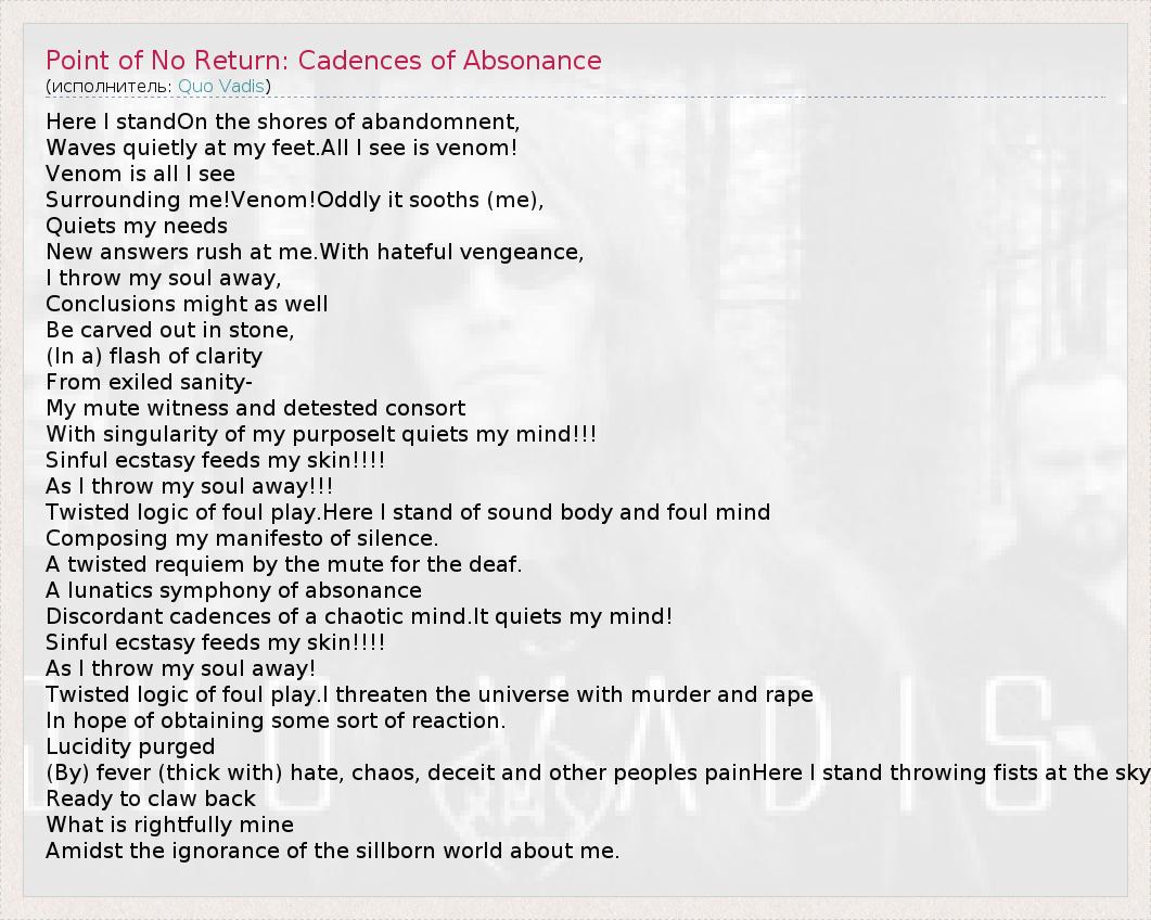 А как ты думаешь, о чем песня "Point of No Return: Cadences of Absonance" ?