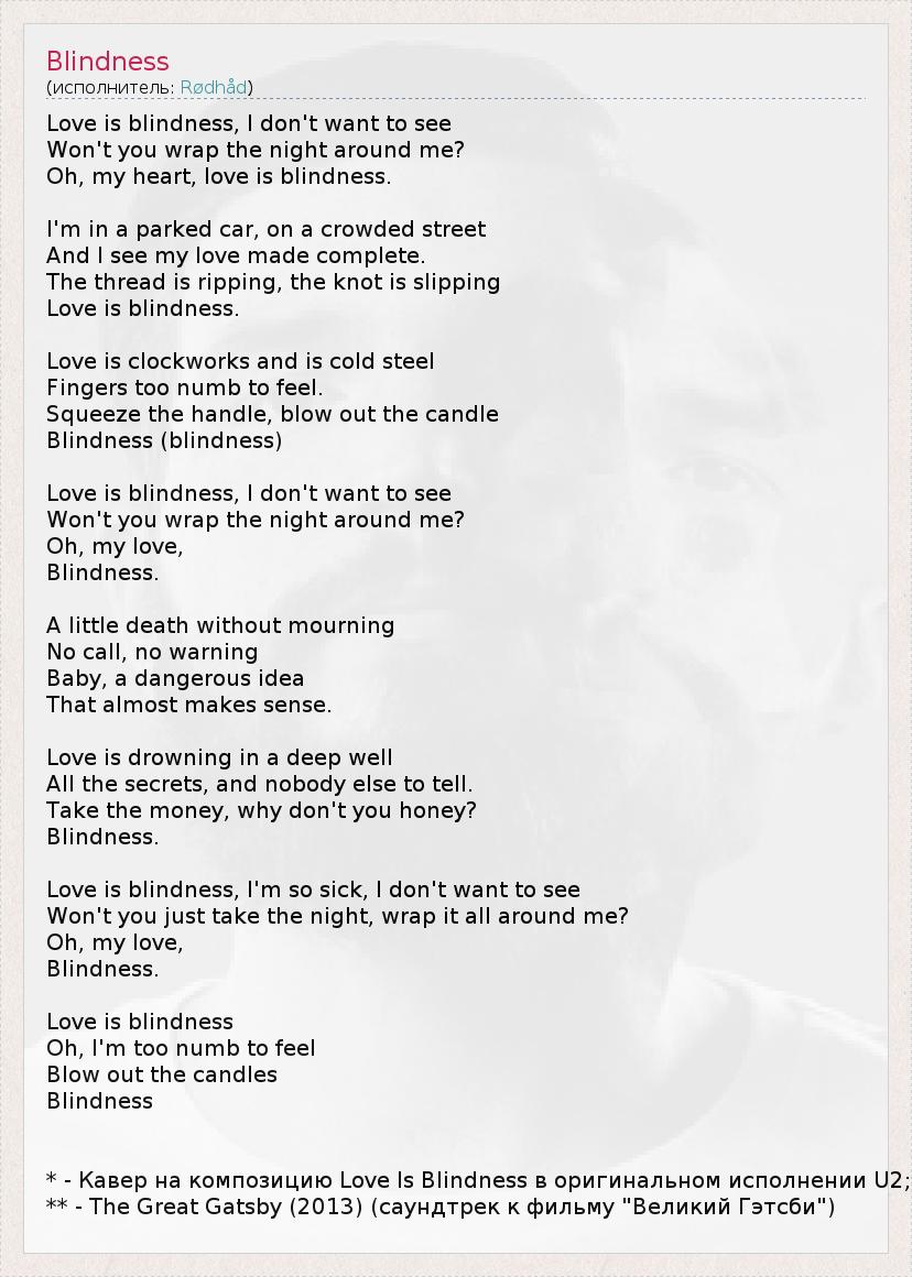 А как ты думаешь, о чем песня "Blindness" ?