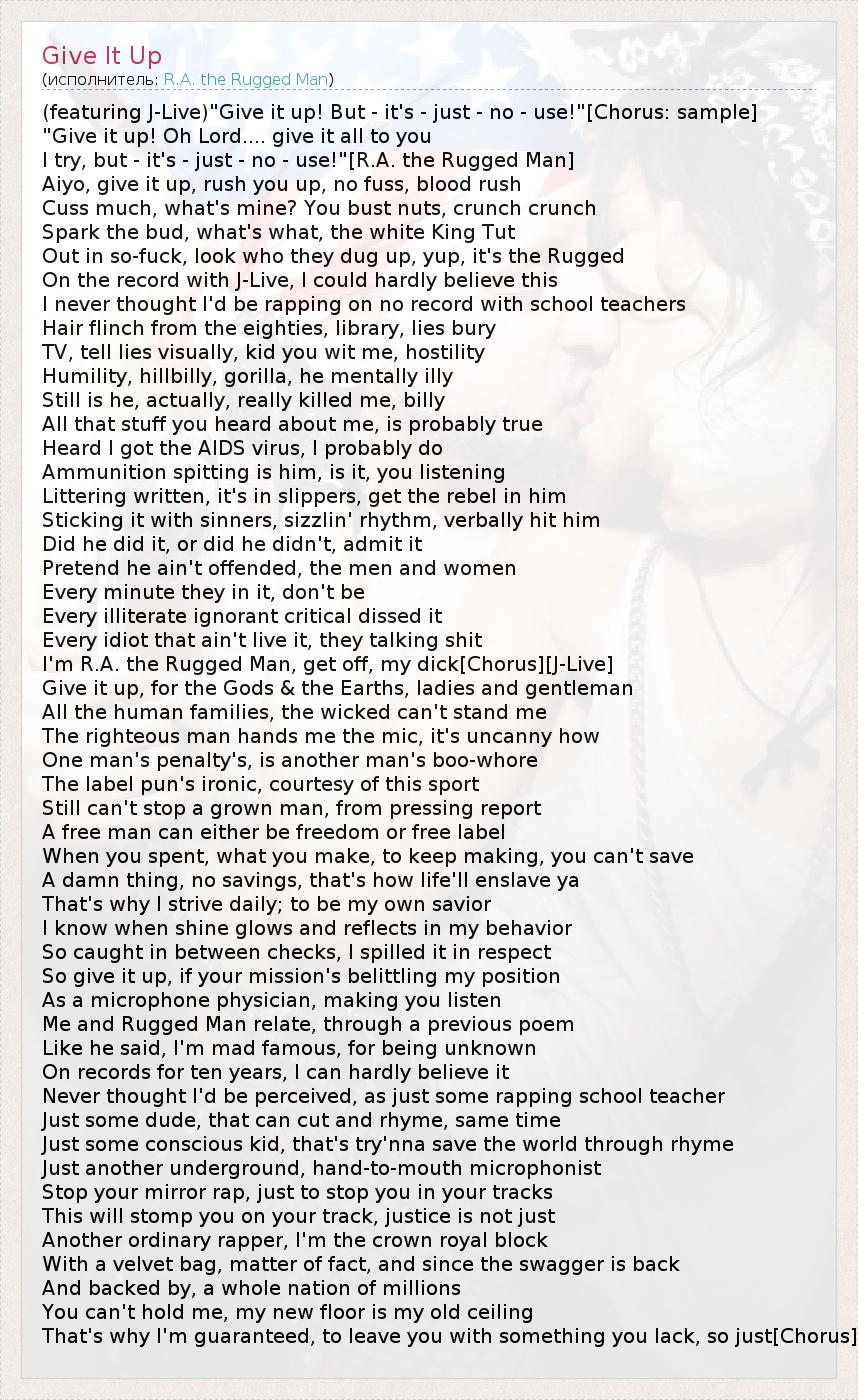 А как ты думаешь, о чем песня "Give It Up" ?