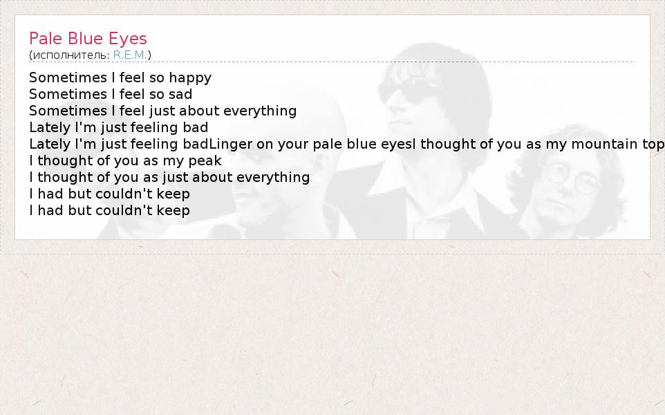 А как ты думаешь, о чем песня "Pale Blue Eyes" ?