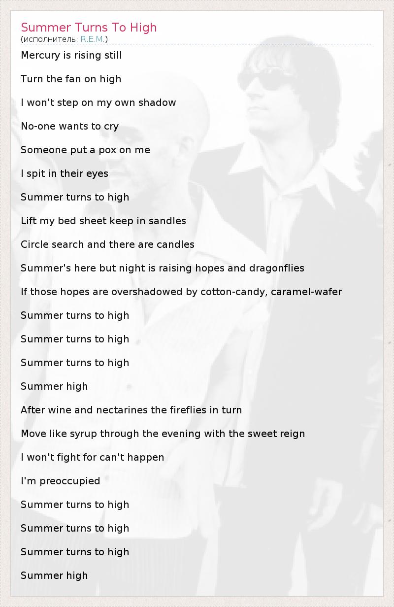 ГлавнаяИсполнителиR.E.M.Summer Turns To High