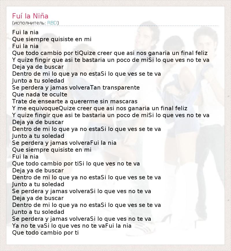 А как ты думаешь, о чем песня "Fuí la Niña" ?