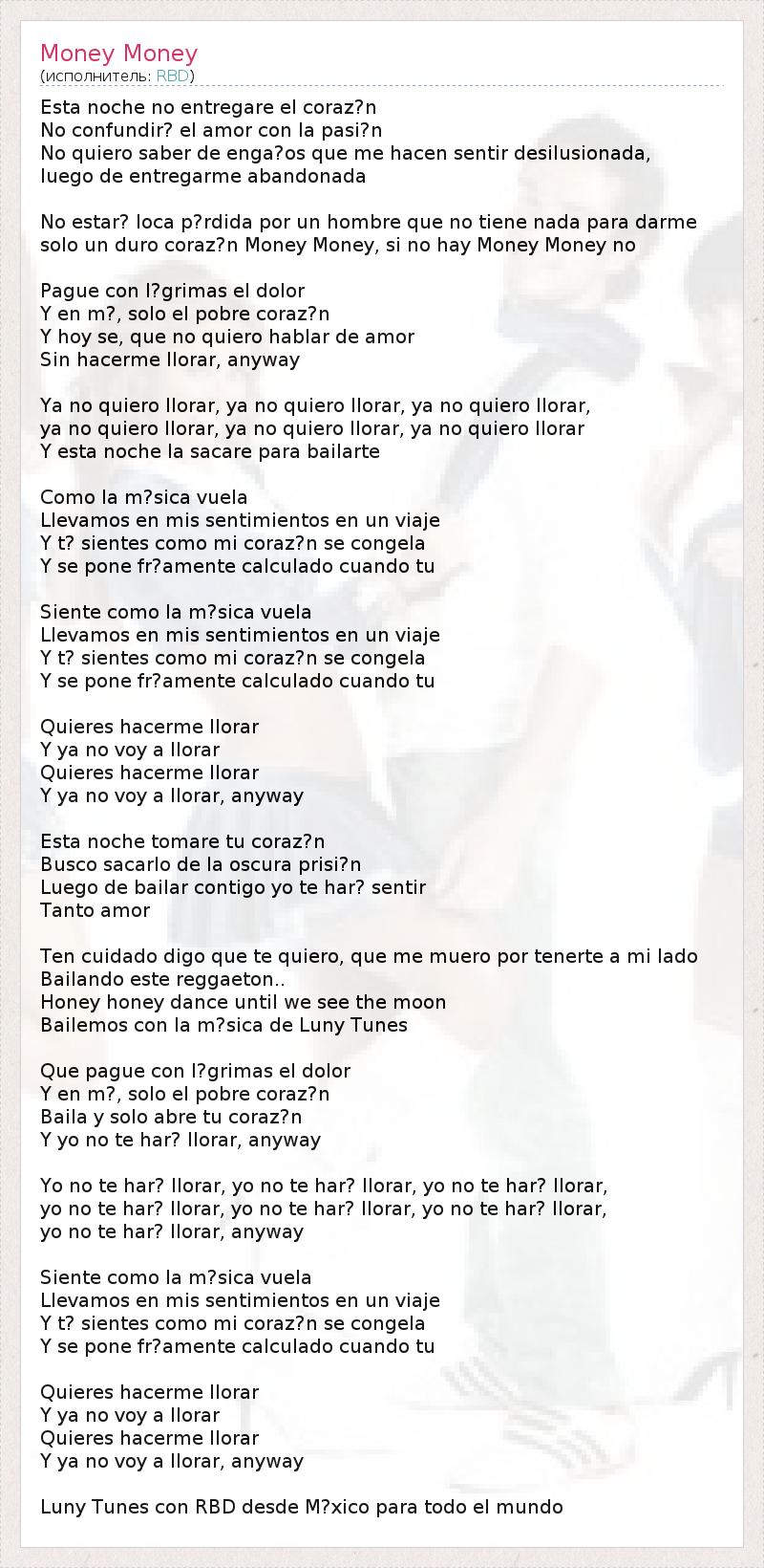 solo un duro coraz?n Money Money, si no hay Money Money no