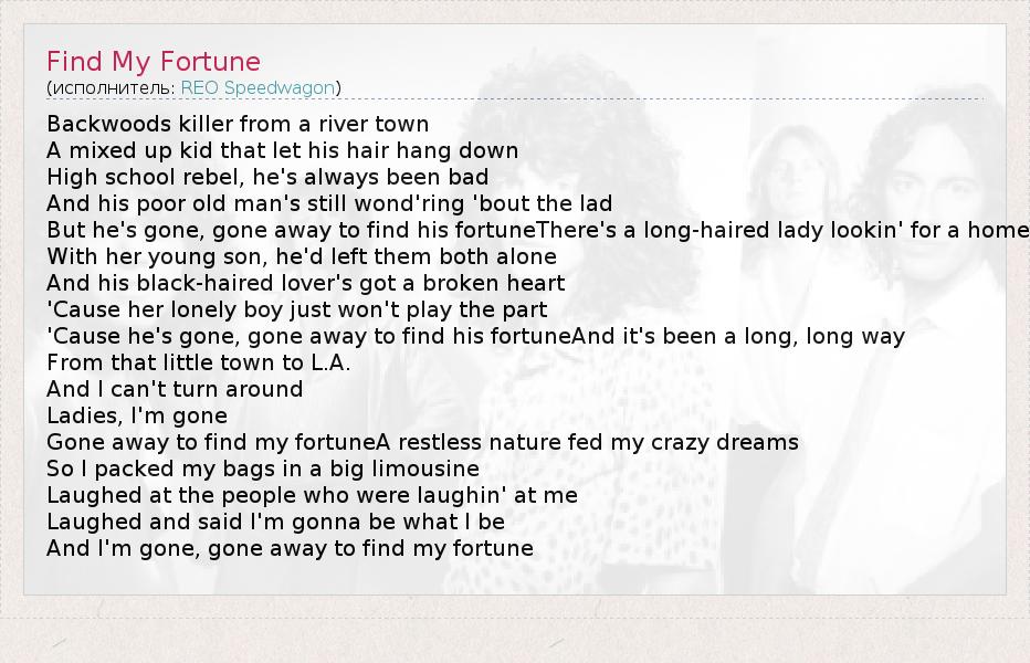 А как ты думаешь, о чем песня "Find My Fortune" ?