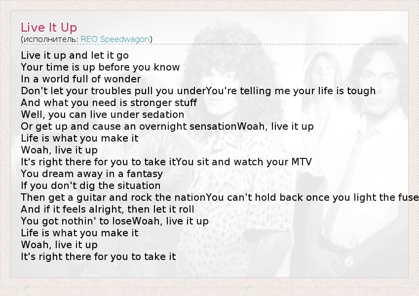 Это интересно:Группа "REO Speedwagon" была основана в далеком 1968 году двумя студентами Иллинойского Университета, Нилом Даути (клавишные) и Аланом Гратцером (ударные). По окончании вуза парни познакомились с неизвестным тогда еще менеджером Ирвином Азоффом (впоследствии прославившимся своей работой с "Eagles" и "Steely Dan"), который организовал первые гастроли команды по Среднему Западу. В начале... продолжение