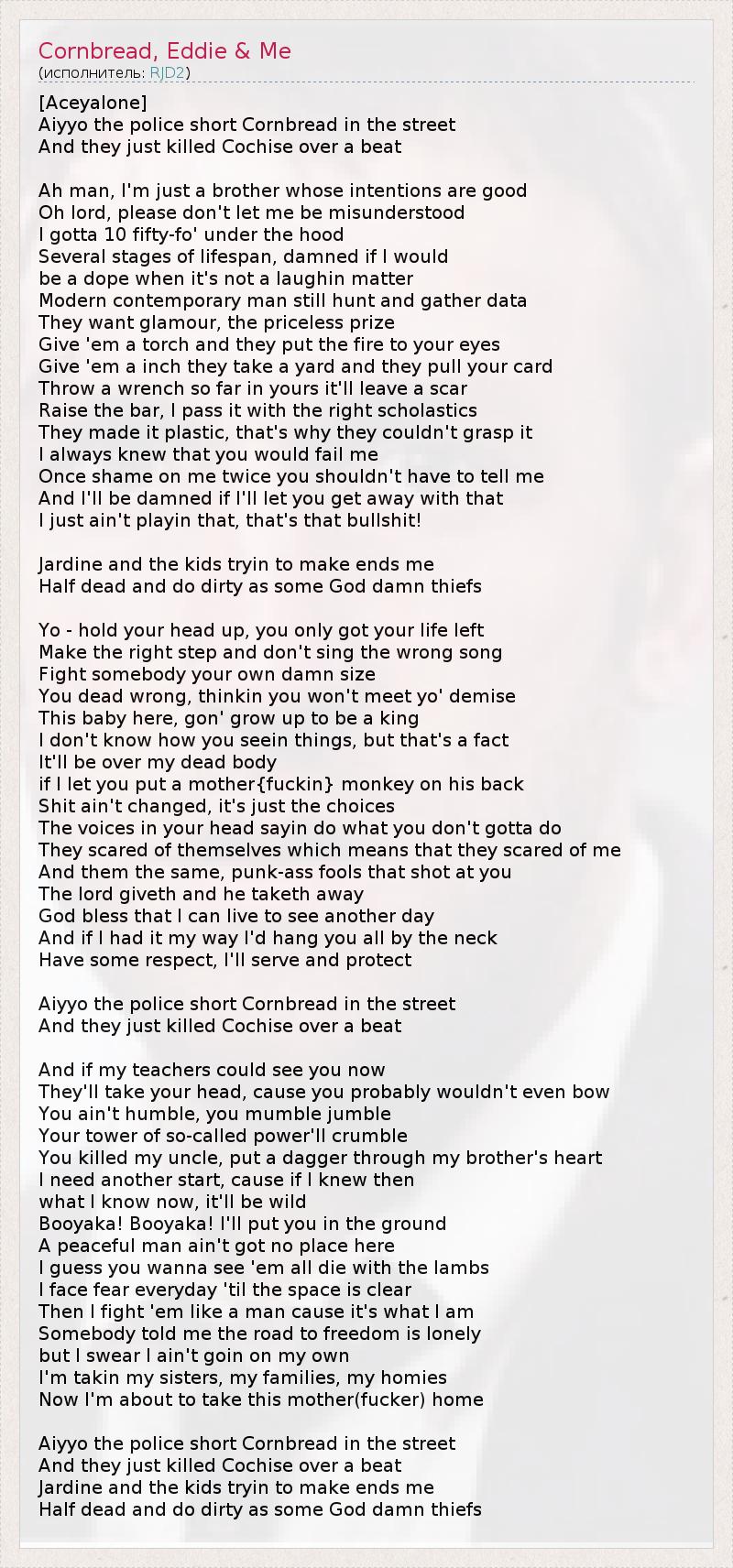 А как ты думаешь, о чем песня "Cornbread, Eddie & Me" ?