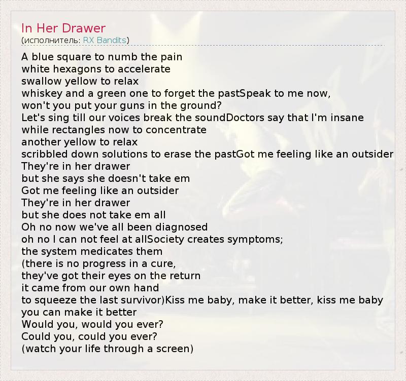 А как ты думаешь, о чем песня "In Her Drawer" ?