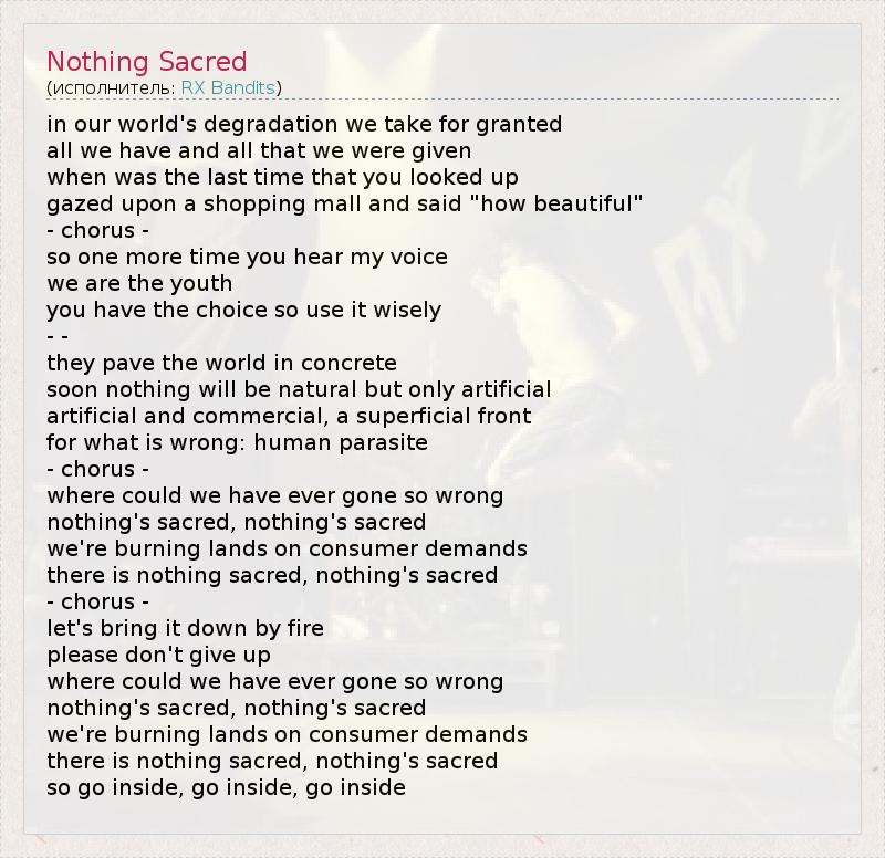 А как ты думаешь, о чем песня "Nothing Sacred" ?