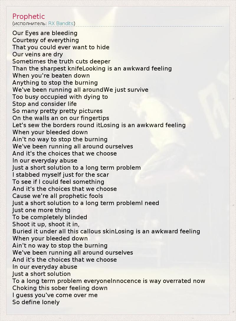 Это интересно:Rx Bandits основана в 1995 году в Сил-Бич, штат Калифорния.Текущий состав:Matt Embree – вокал, гитара;Steve Choi – гитара, клавишные;Joseph Troy – бас, бэк вокал;Christopher Tsagakis – барабаны.