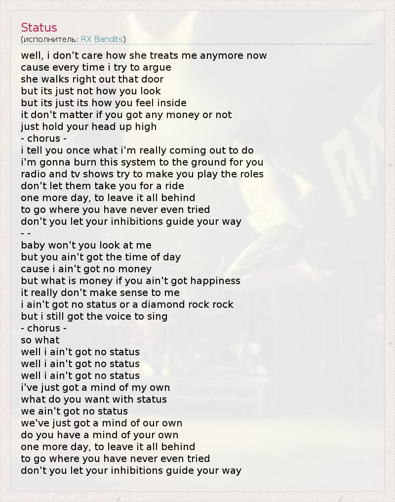 А как ты думаешь, о чем песня "Status" ?