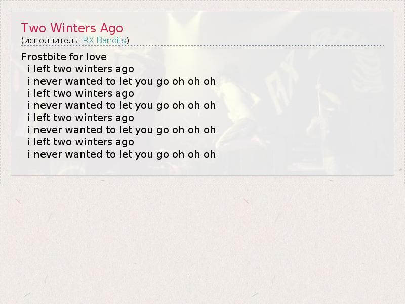 А как ты думаешь, о чем песня "Two Winters Ago" ?