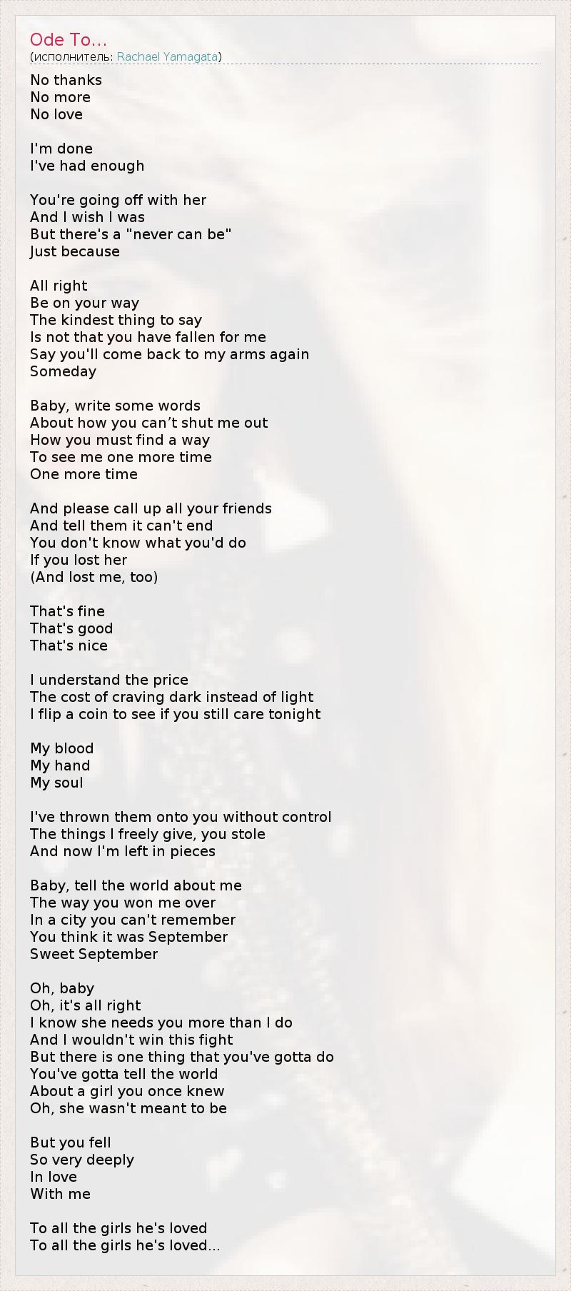 А как ты думаешь, о чем песня "Ode To..." ?