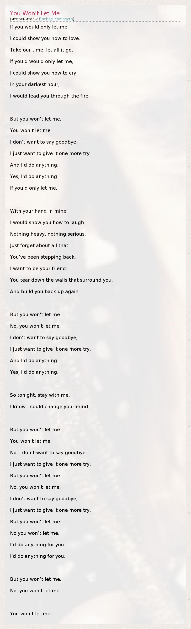 А как ты думаешь, о чем песня "You Won't Let Me" ?