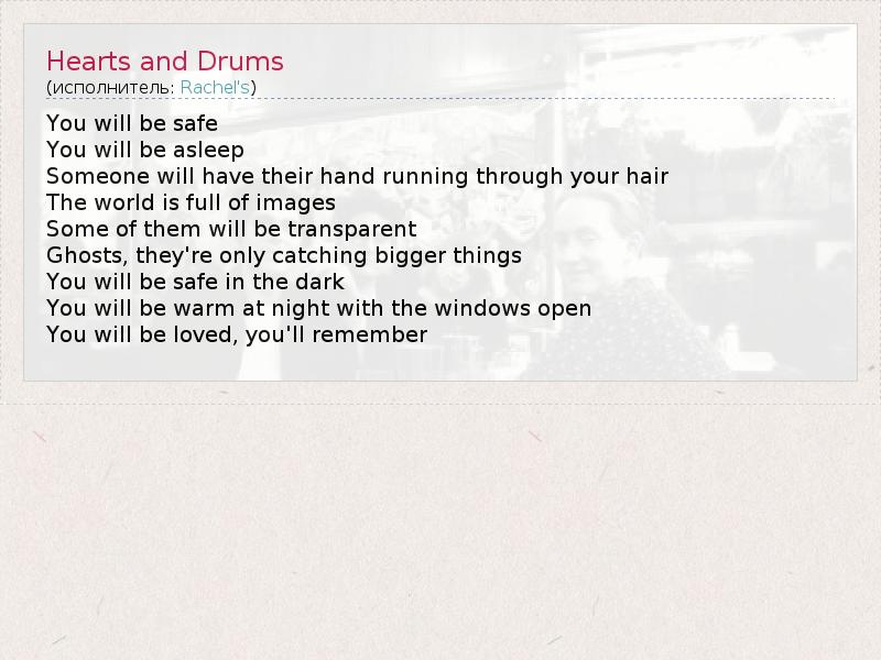 А как ты думаешь, о чем песня "Hearts and Drums" ?