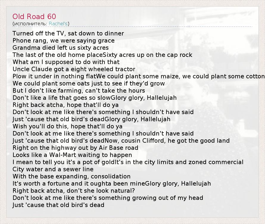 А как ты думаешь, о чем песня "Old Road 60" ?