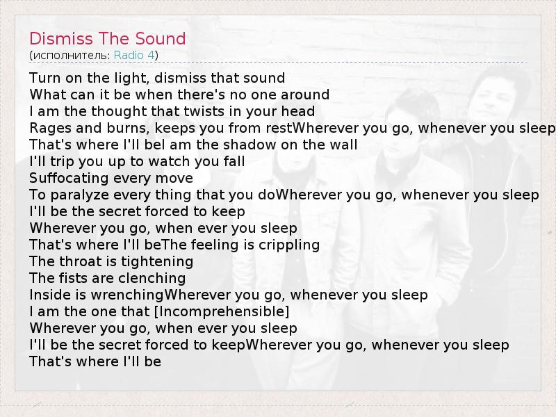 А как ты думаешь, о чем песня "Dismiss The Sound" ?