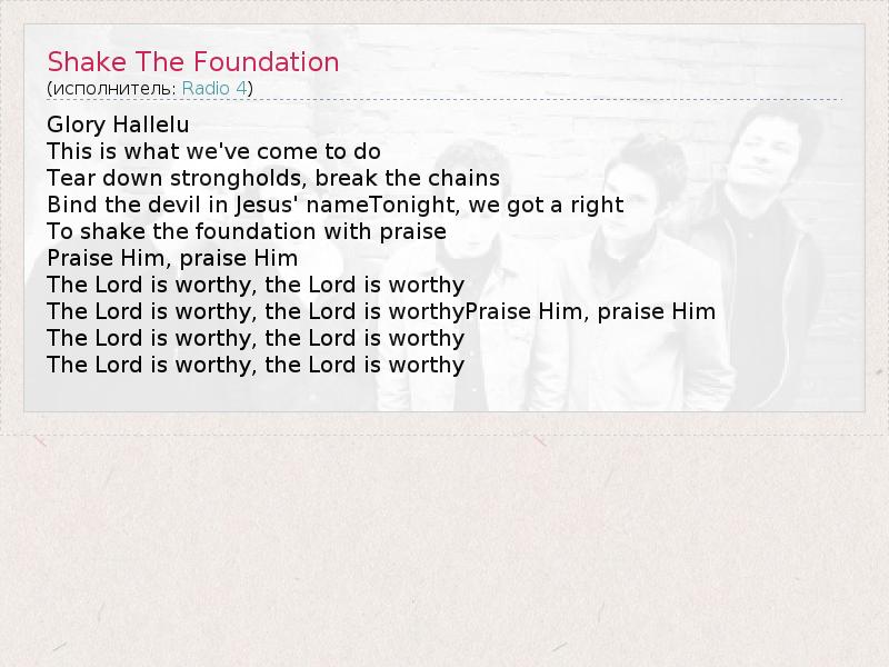 А как ты думаешь, о чем песня "Shake The Foundation" ?