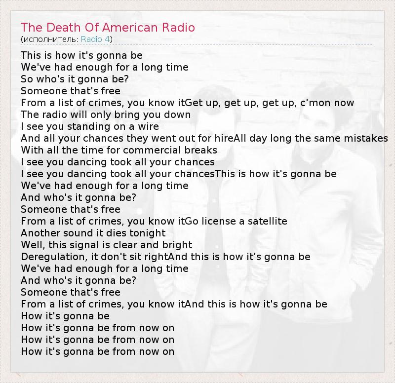 А как ты думаешь, о чем песня "The Death Of American Radio" ?