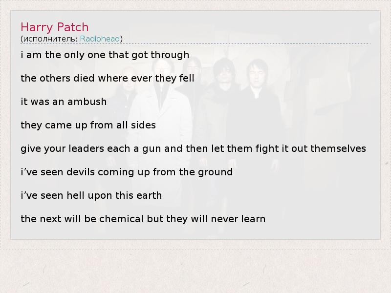 А как ты думаешь, о чем песня "Harry Patch" ?