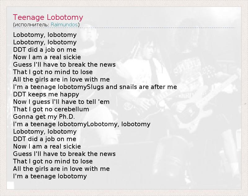 А как ты думаешь, о чем песня "Teenage Lobotomy" ?