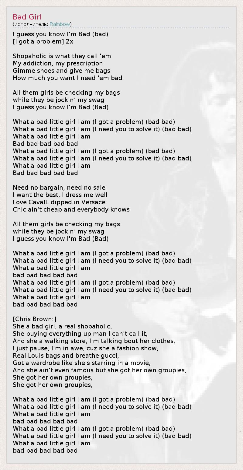 А как ты думаешь, о чем песня "Bad Girl" ?