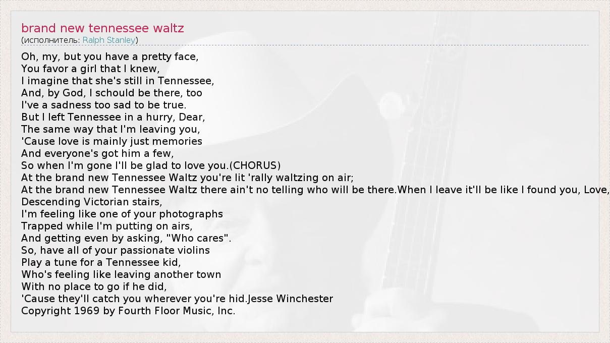 ГлавнаяИсполнителиRalph Stanleybrand new tennessee waltz
