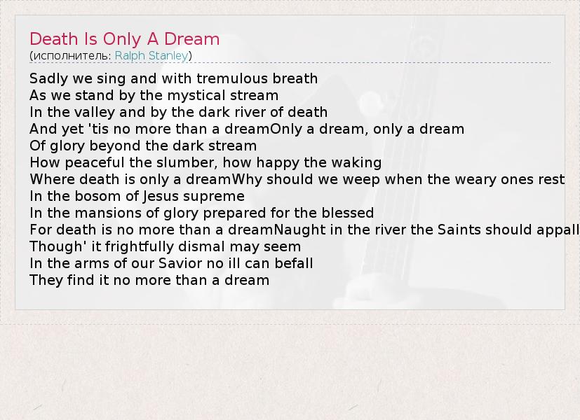 А как ты думаешь, о чем песня "Death Is Only A Dream" ?