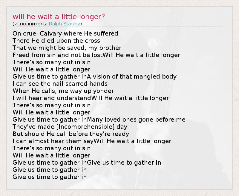 ГлавнаяИсполнителиRalph Stanleywill he wait a little longer?