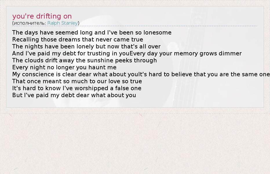 А как ты думаешь, о чем песня "you're drifting on" ?