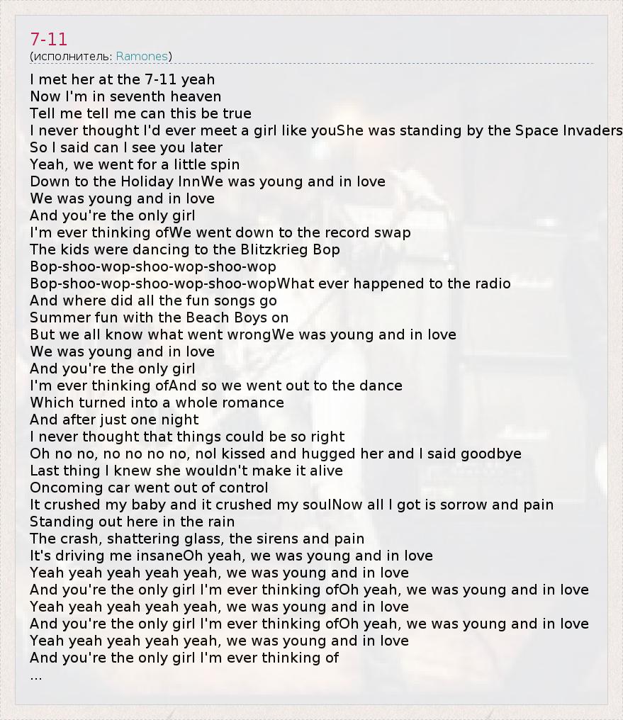 And you're the only girl I'm ever thinking ofOh yeah, we was young and in love