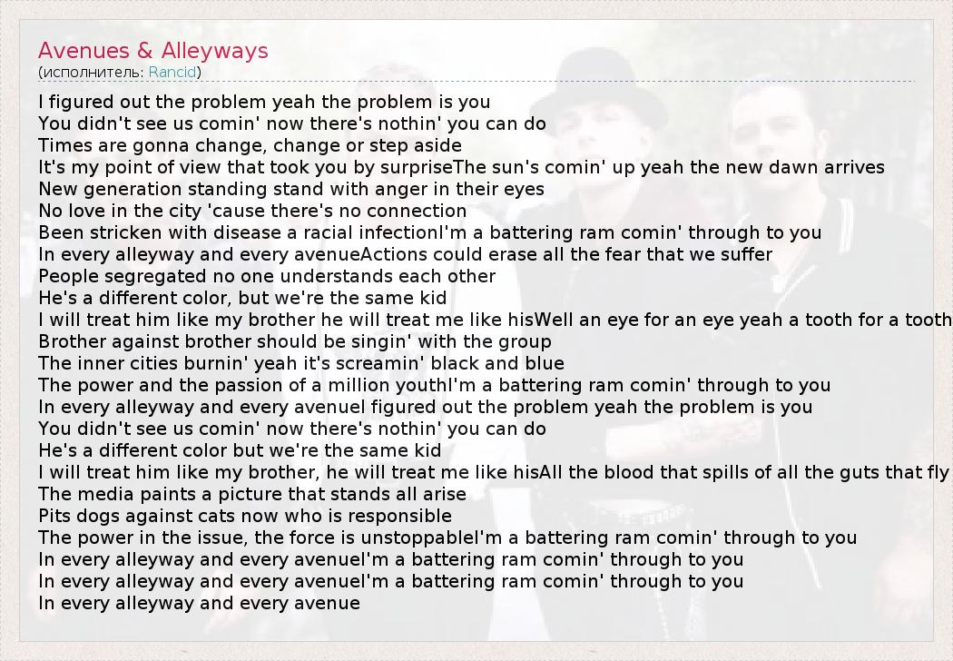 А как ты думаешь, о чем песня "Avenues & Alleyways" ?