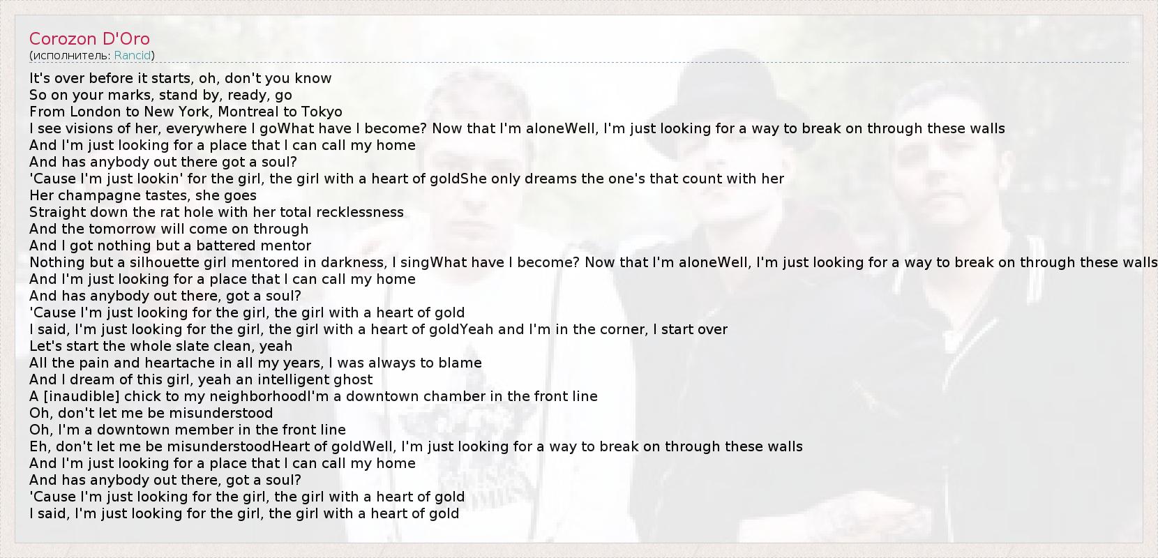 А как ты думаешь, о чем песня "Corozon D'Oro" ?