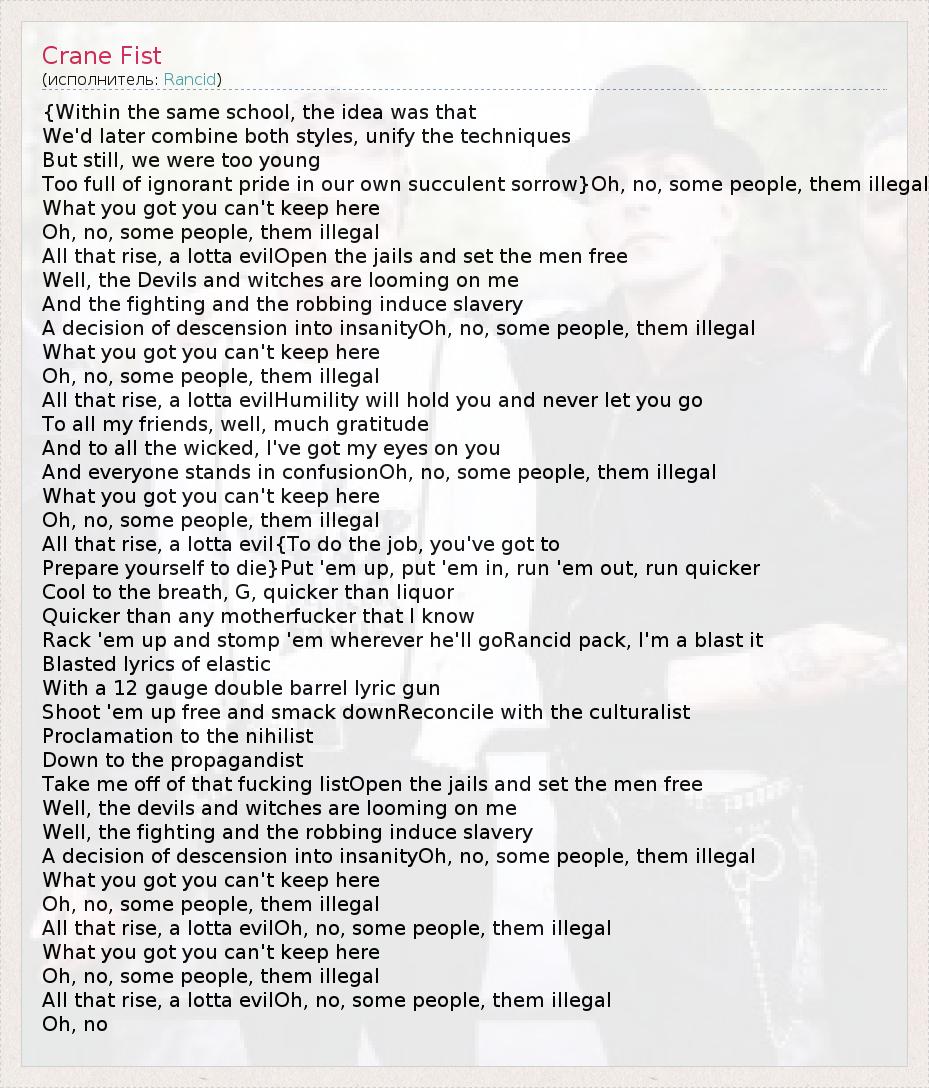 А как ты думаешь, о чем песня "Crane Fist" ?
