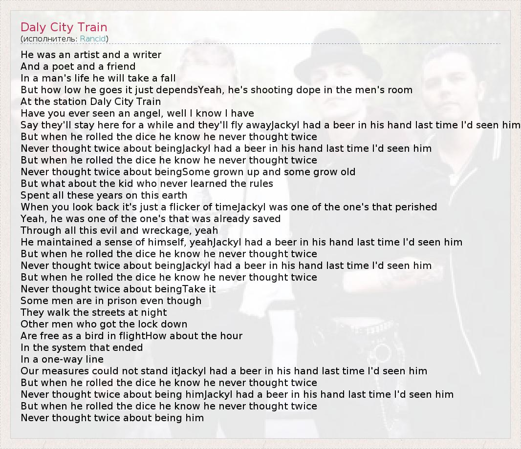 А как ты думаешь, о чем песня "Daly City Train" ?
