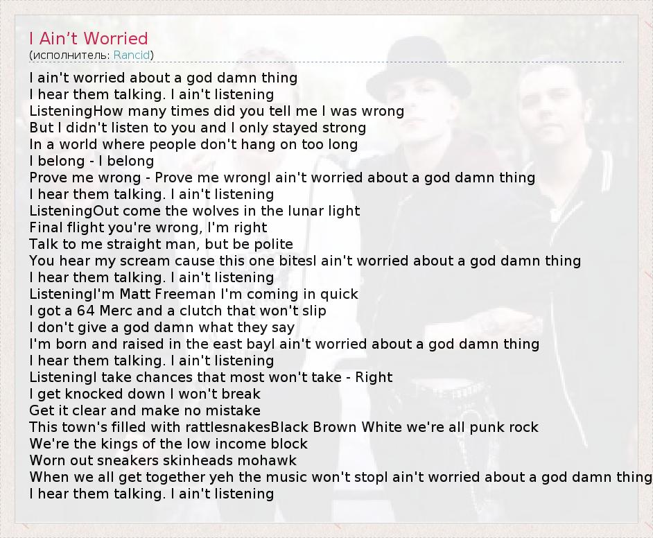А как ты думаешь, о чем песня "I Ain’t Worried" ?