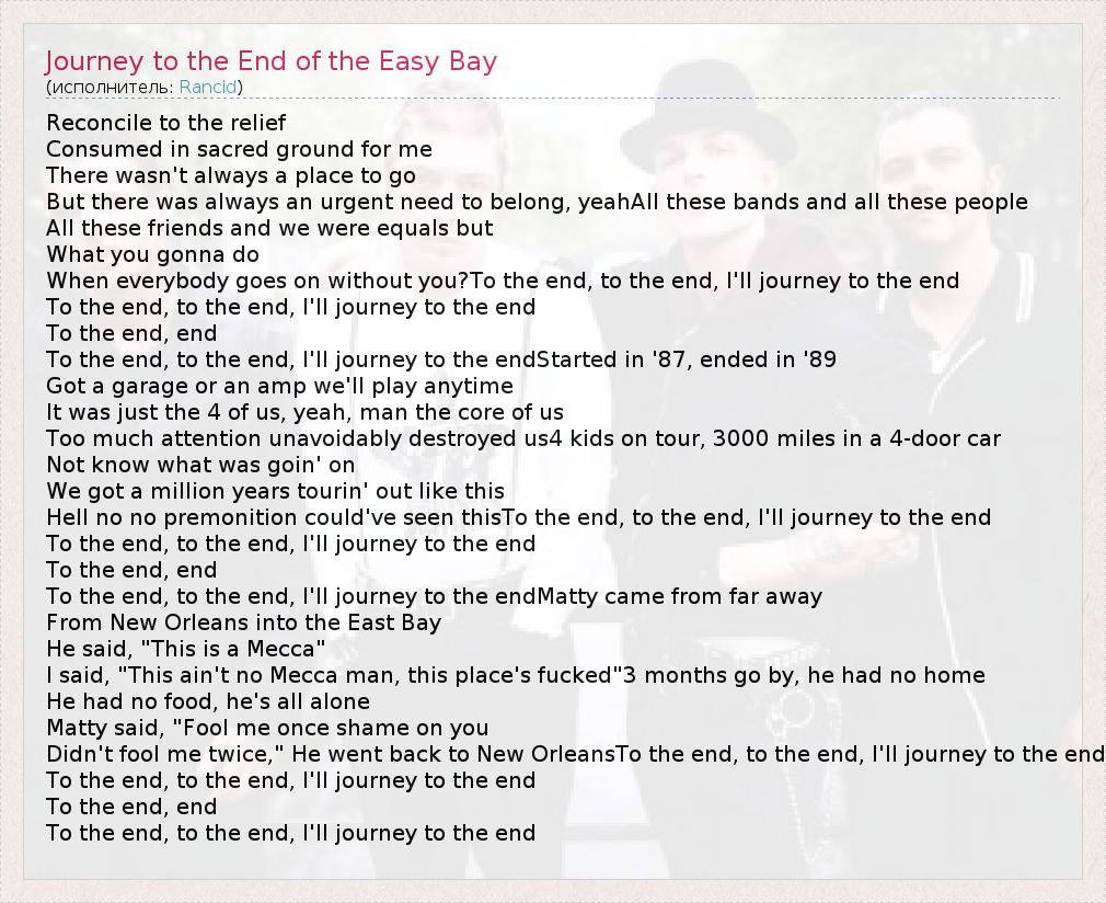 А как ты думаешь, о чем песня "Journey to the End of the Easy Bay" ?