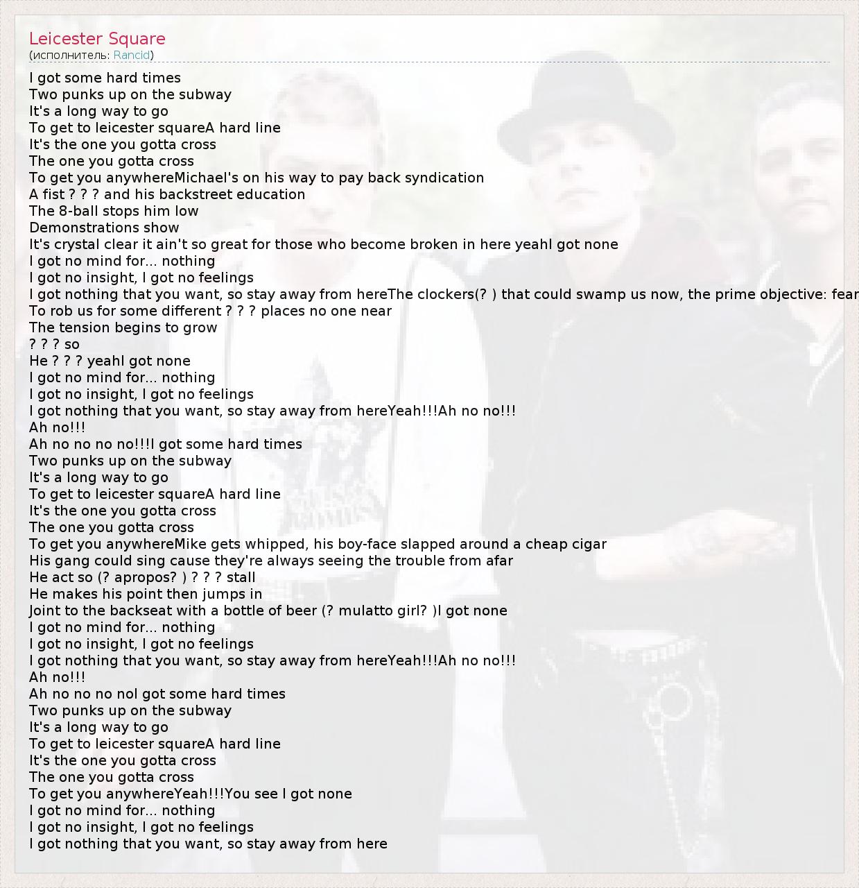 А как ты думаешь, о чем песня "Leicester Square" ?