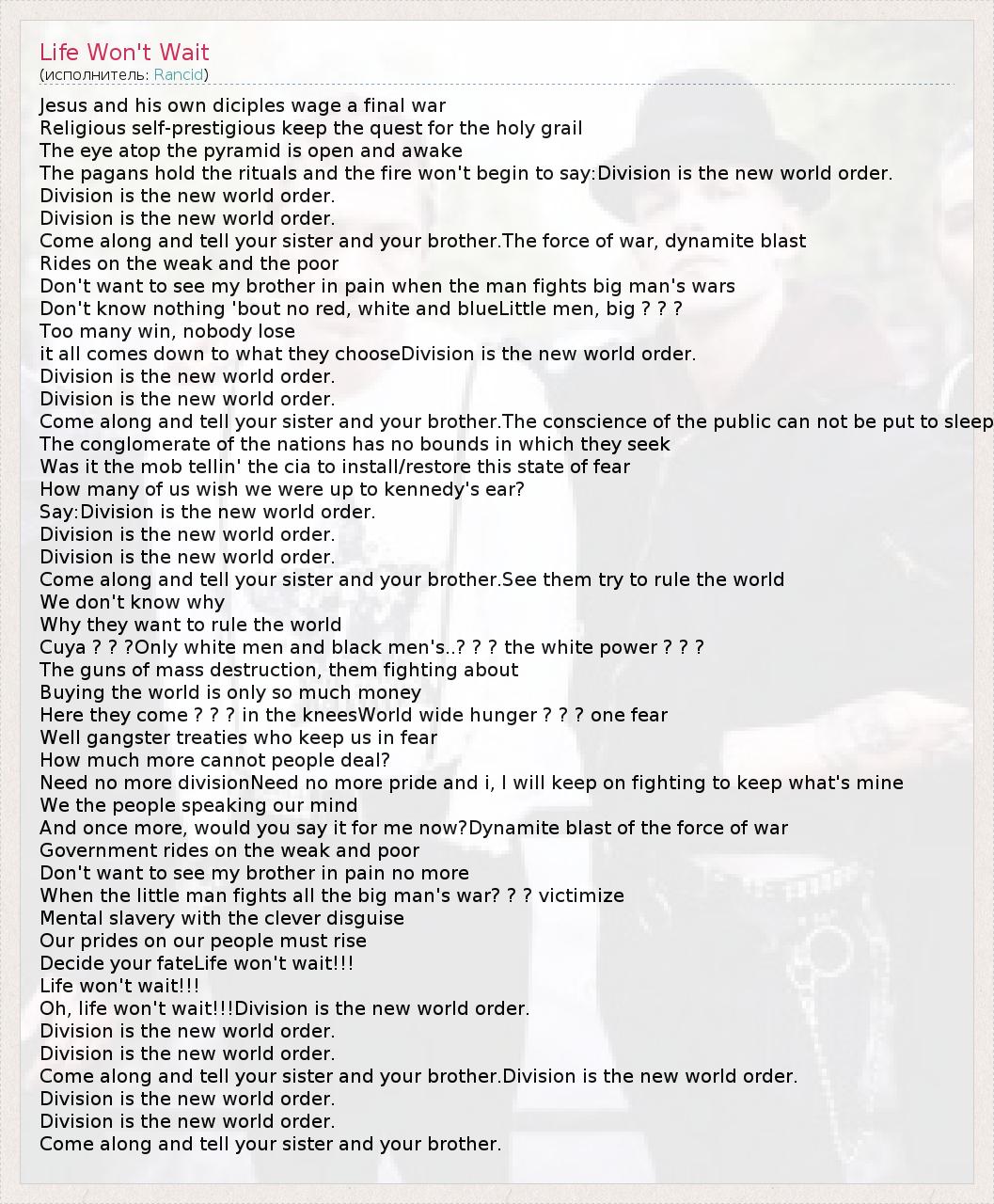 А как ты думаешь, о чем песня "Life Won't Wait" ?