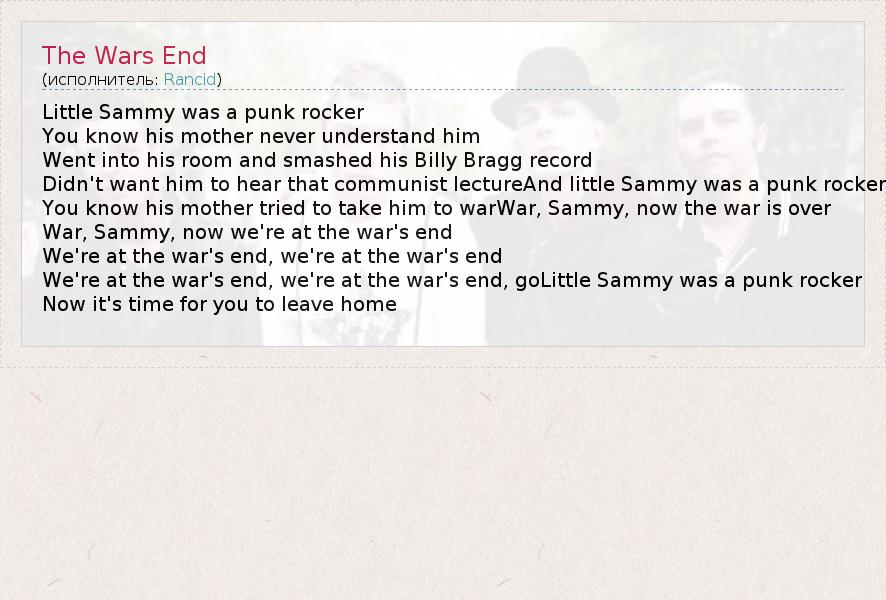 We're at the war's end, we're at the war's end, goLittle Sammy was a punk rocker