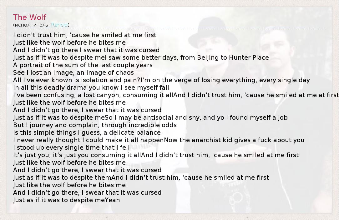 I've been confusing, a lost canyon, consuming it allAnd I didn't trust him, 'cause he smiled at me at first