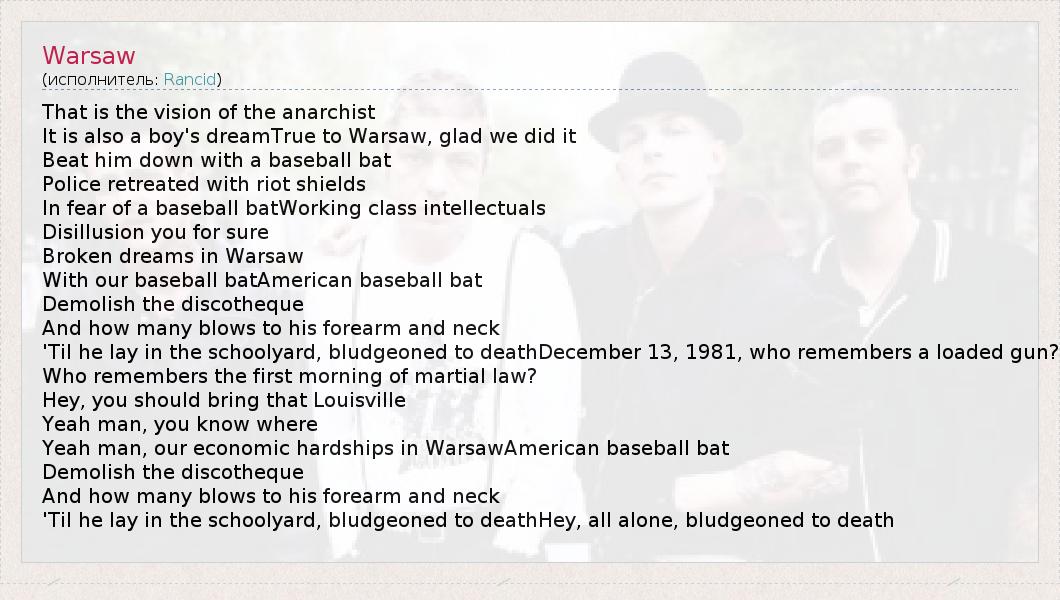 Yeah man, our economic hardships in WarsawAmerican baseball bat